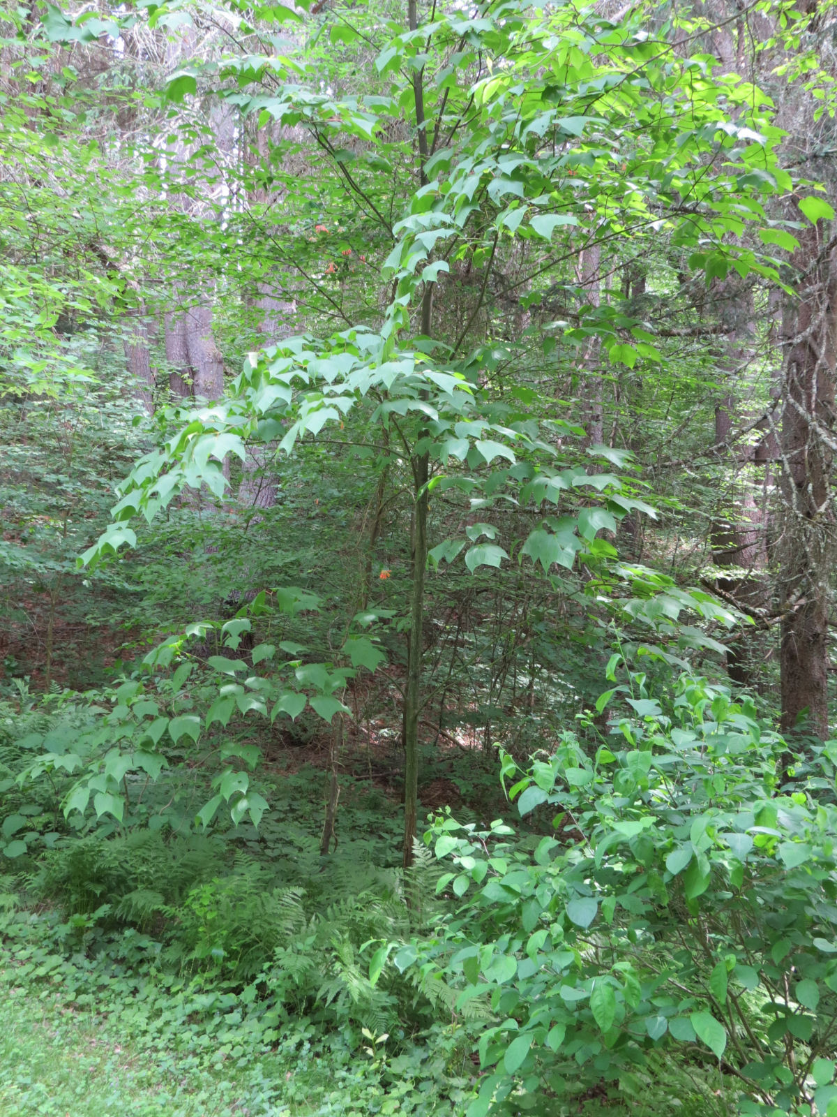 - Splashes of red worked their way up inside a neighboring striped maple.