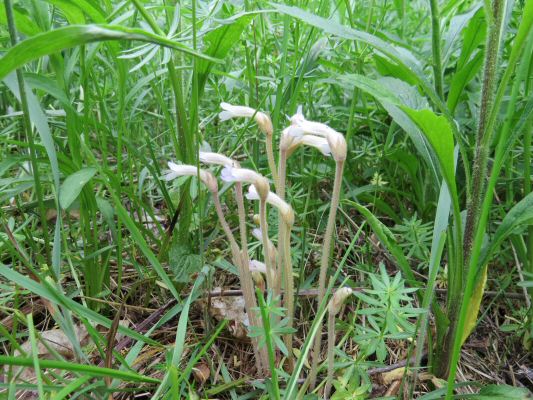 Right at my feet was a stand of one-flowered cancerroot - one of those parasitic, chlorophyll free plants.