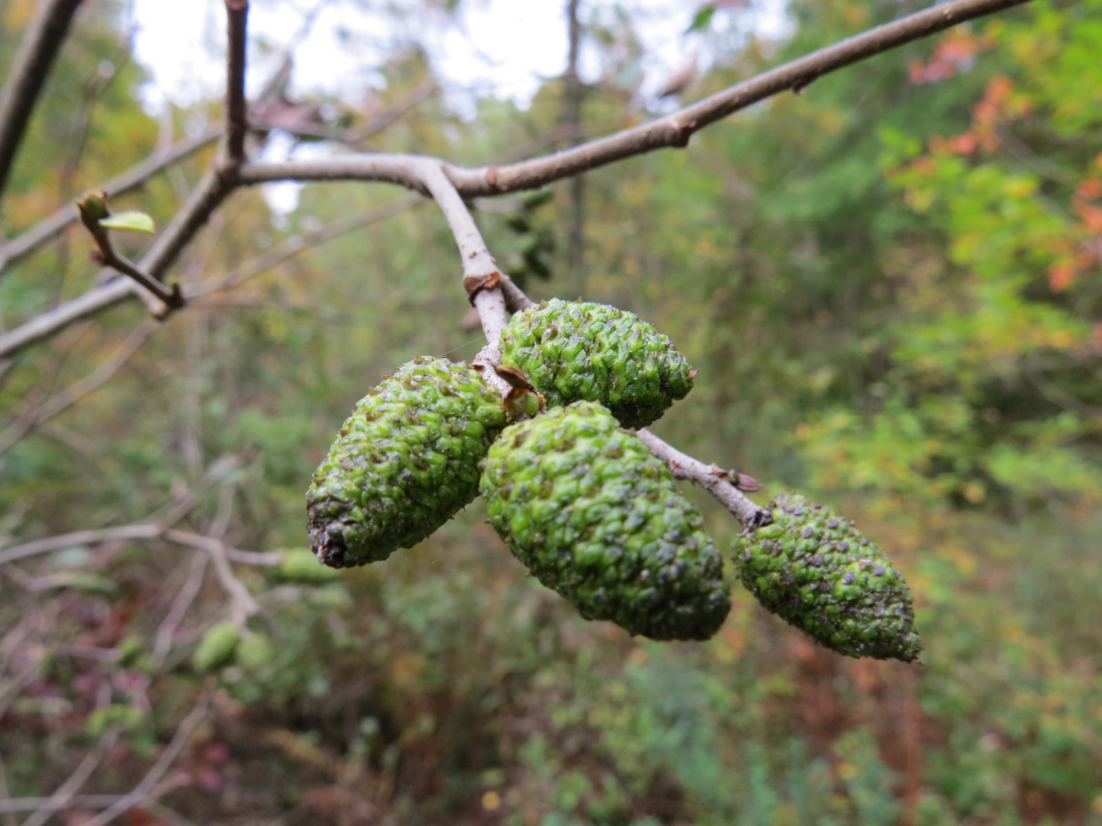- Fruit of speckled alder will eventually open as little cones to scatter their seed.