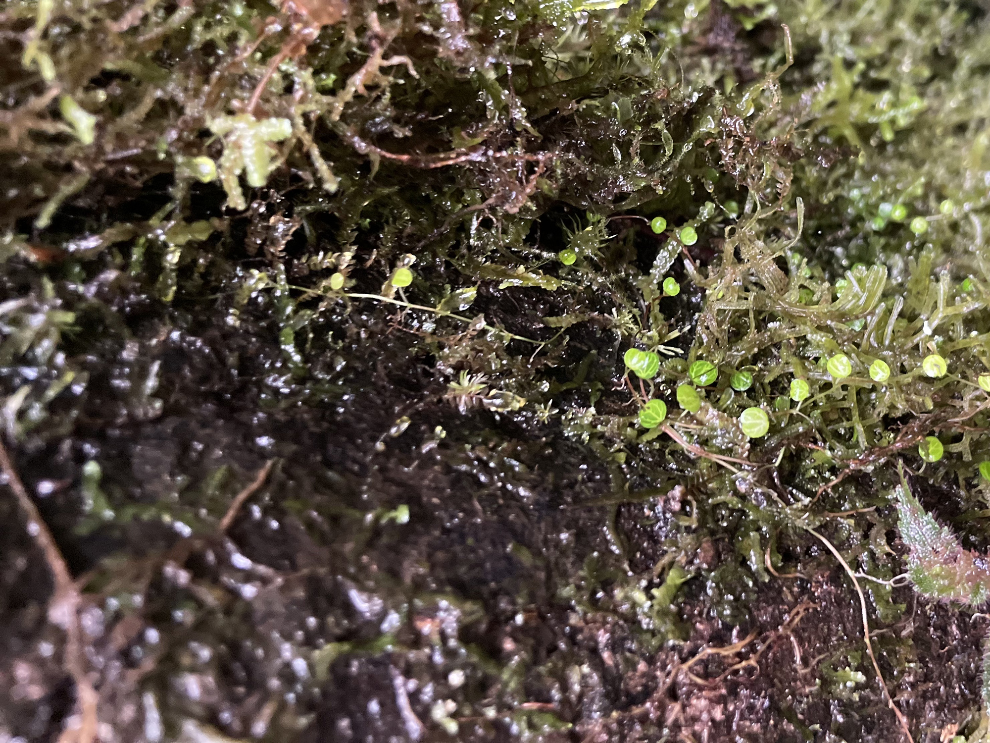 Canopy soil grows best in cloud forests because they are wet and not too warm. In these forests, every living surface is brimming with epiphytes (plants that grow on other plants, ranging from tiny mosses to huge bromeliads) … and even the epiphytes have algae growing on them. When a leaf or plant dies, it often stays in place on the tree, stuck in the dense foliage. Over time, decomposition — slowed down by cool temperatures — turns it into dark, peaty canopy soil.